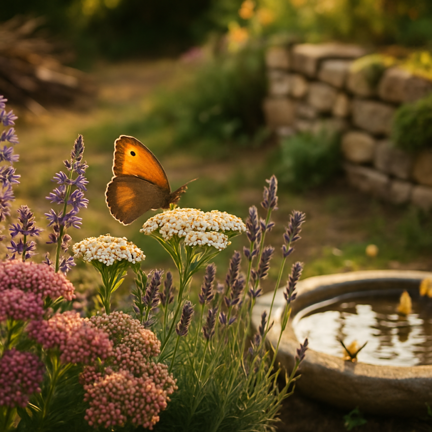 Schmetterlinge lieben warme, sonnige Flächen mit zugänglichen Blüten. Pflanzen wie Wiesensalbei, Schafgarbe, Fetthenne, Lavendel und Wilde Möhre sind besonders attraktiv. Entscheidend ist eine Staffelung der Blütezeiten: Früh-, Mittel- und Spätblüher sorgen dafür, dass immer Nektar verfügbar ist. Setze Pflanzen in Gruppen, das erhöht die Sichtbarkeit und Effizienz für die Falter.